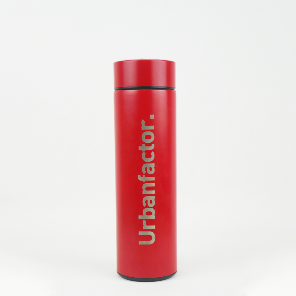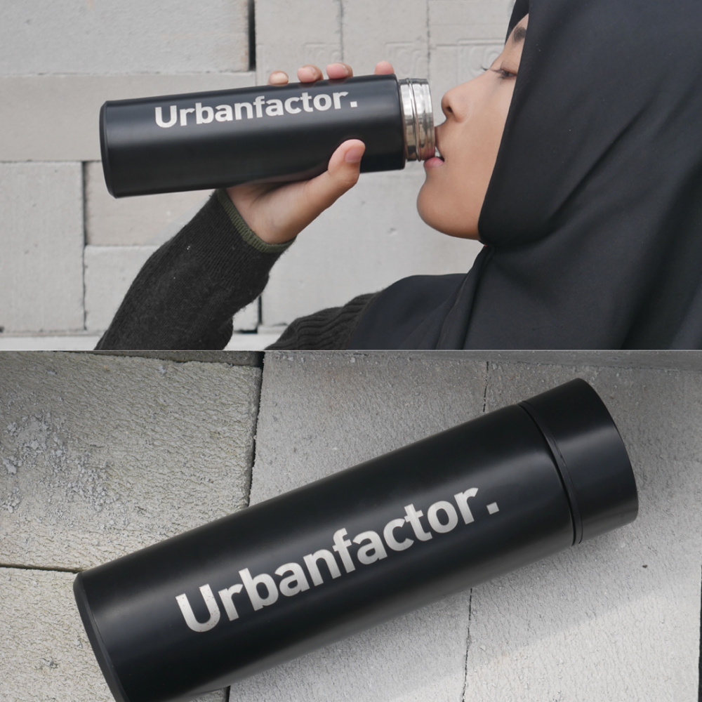 Thumbler Urbanfactor. terdapat 2 warna, yaitu Hitam dan Merah. Memiliki fasilitas ukuran suhu air yang terdapat di dalam thumbler tersebut sehingga membuat kita tahu apakah air minum kita panas, hangat atau normal.