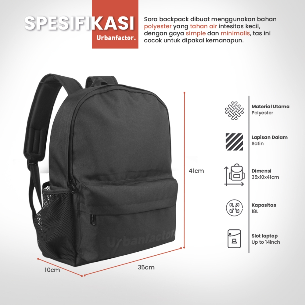 Sora adalah salah satu series Daypack urbanfactor, Daypack minimalis dengan desain elegan, ringan, dan nyaman untuk aktivitas harian, cocok untuk kerja, kuliah, atau jalan santai.