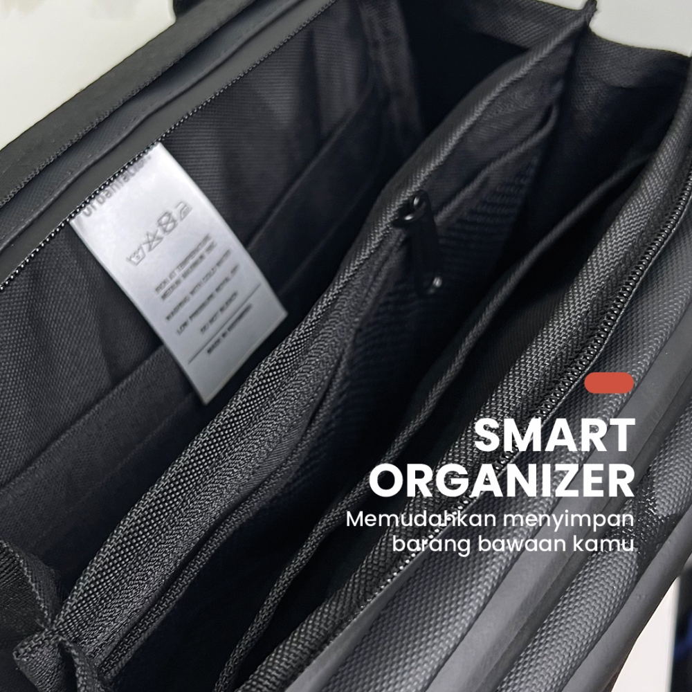 * kompartemen utama luas dan memiliki banyak skat untuk organizer barang, muat dompet handphone charger