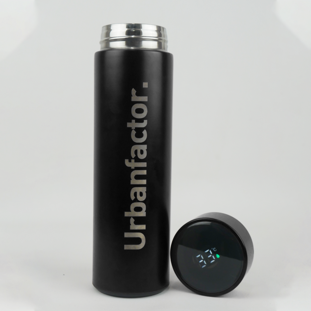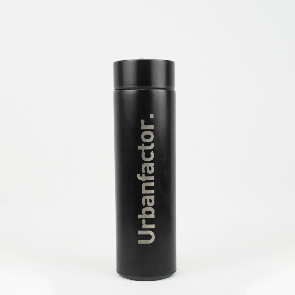 Thumbler Urbanfactor. terdapat 2 warna, yaitu Hitam dan Merah. Memiliki fasilitas ukuran suhu air yang terdapat di dalam thumbler tersebut sehingga membuat kita tahu apakah air minum kita panas, hangat atau normal.