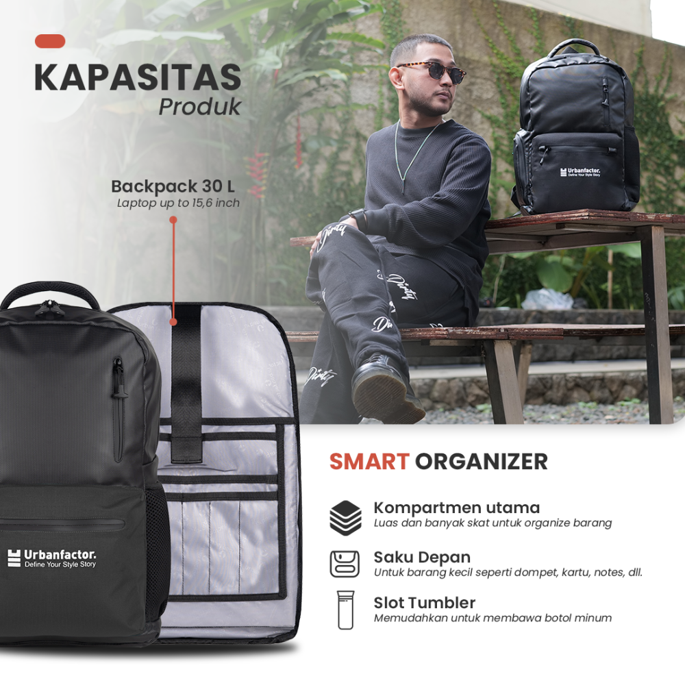 **Kapasitas 30L, Tempat Laptop Up to 15,6 inch**